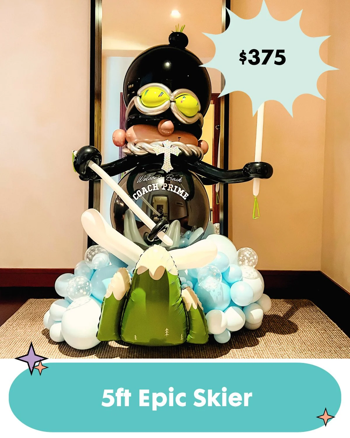 TAchieve the trendy free form design in an easy and pre-assembled configuration. A great alternative to large organic installations. Comes with jumbo topper with custom vinyl application tailored to your theme.