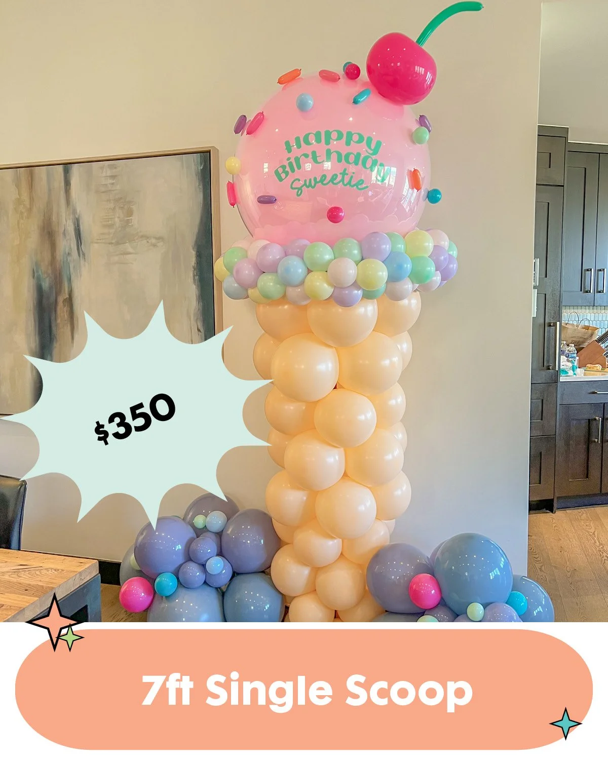 Approx. 6-7ft tall from base to top of balloon.